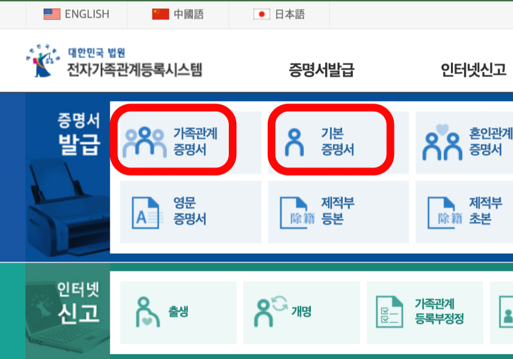 가족관계증명서, 기본증명서 무료 발급 방법 본문