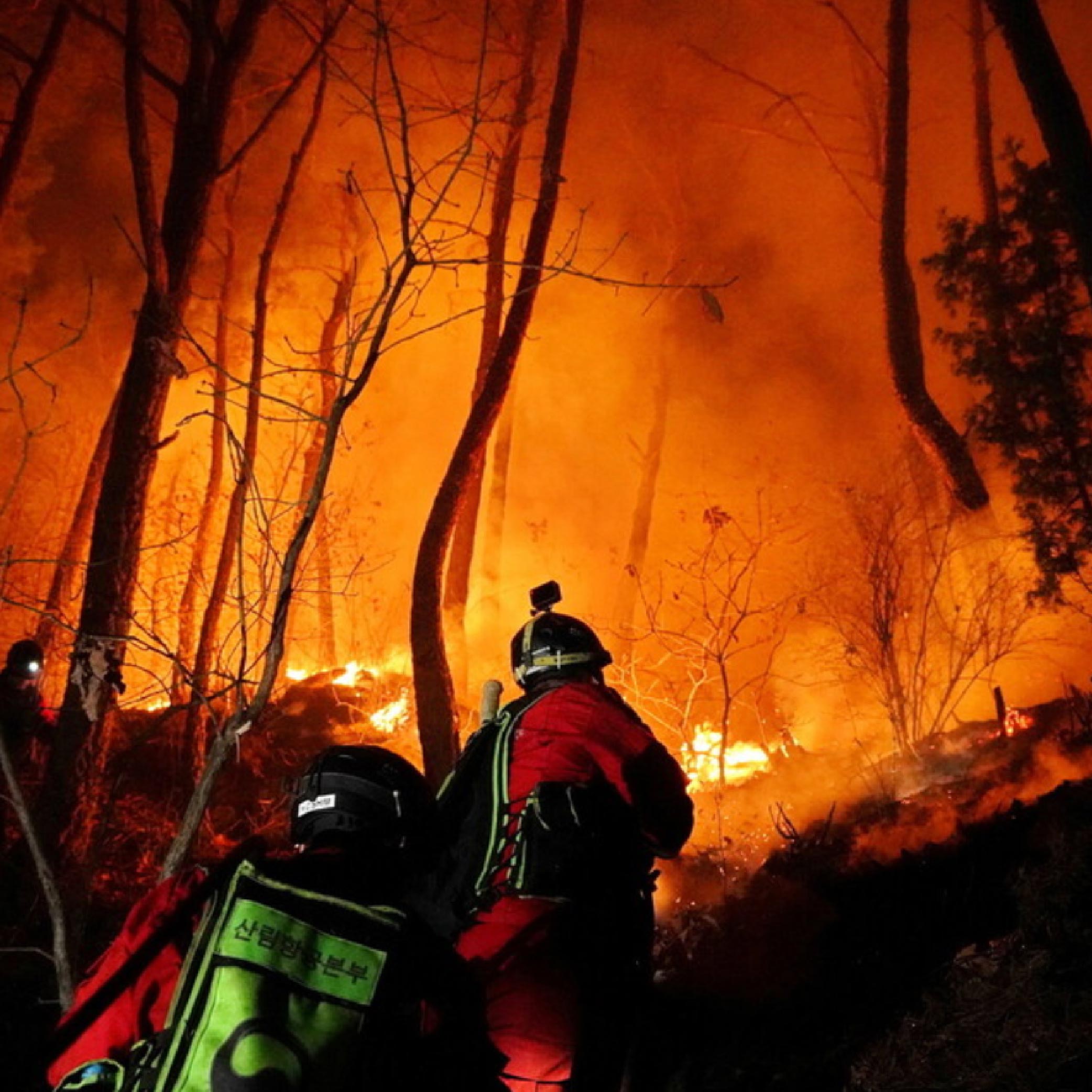 10일 오후에 강원도 양구군 양구읍 송청리에서 시작된 산불이 꺼지지않아 도로까지 내려오고 있다. 산림청 산림항공본부 진화대원들이 방화선을 구축하고 있으며, 산림청 헬기와 군 헬기를 합해 총 27대가 작업에 투입되었다. 산불특수진화대원 등 인력들이 1300명이 투입되었지만 건조할 날씨 탓인지 불길이 진압되지 않고 있다.