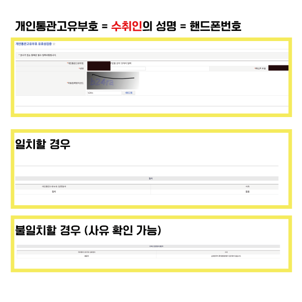수취인의 성함 = 핸드폰 번호 = 개인통관고유부호