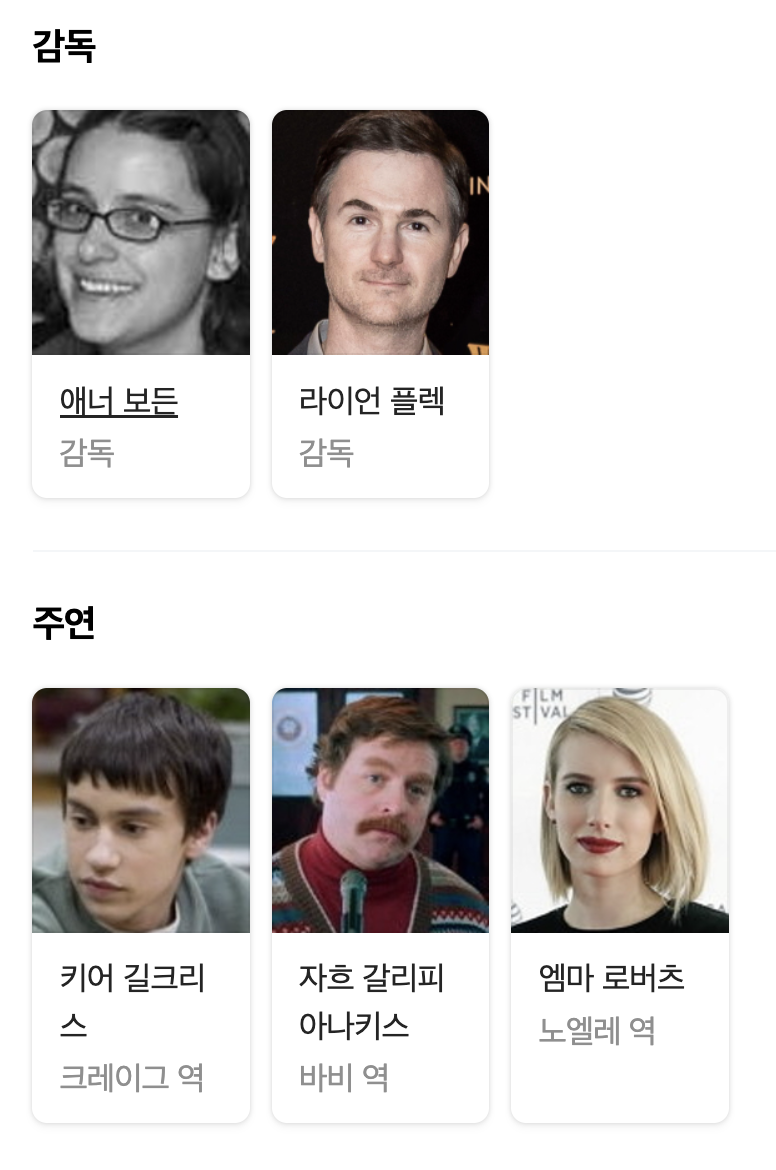 - 주연 : 키어 길크리스, 자흐 갈리피아나키스, 엠마 로버츠