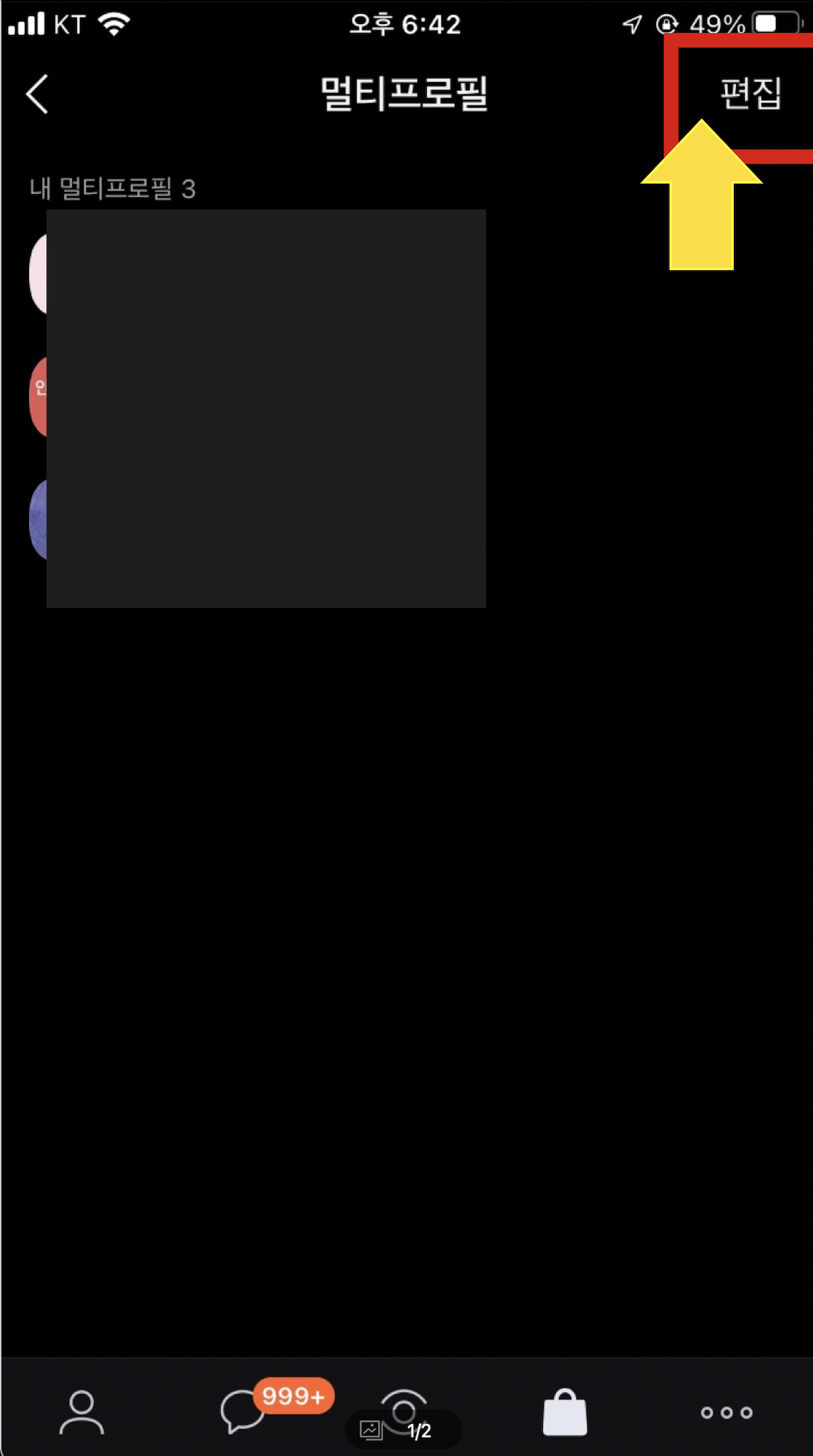 - 편집 클릭 - 삭제하고 싶은 멀티프로필 선택 후 삭제