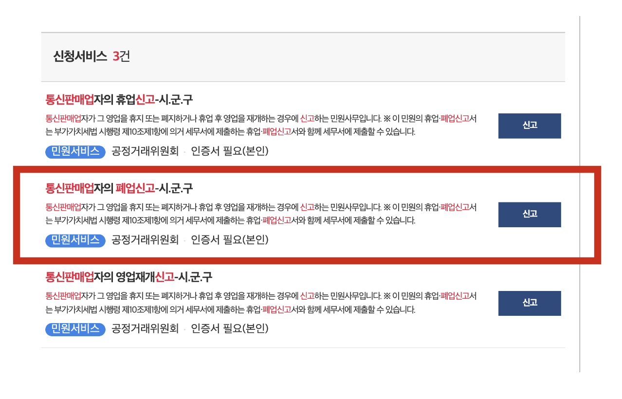 통신판매업 폐업(휴업) 신청 방법